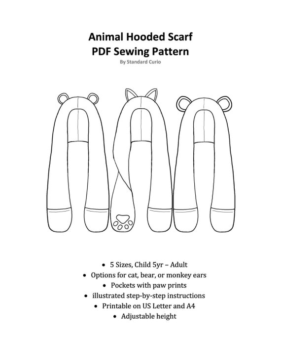 Pdf Animal Hooded Scarf Sewing Pattern Child Adult Unisex Etsy