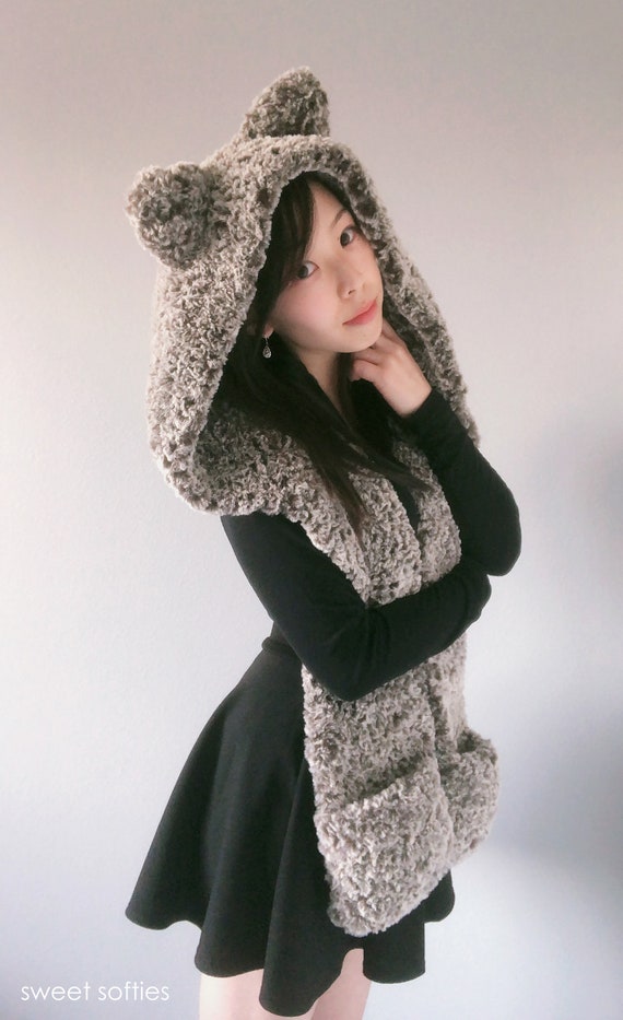 Free Crochet Pattern Hooded Timber Wolf Scarf Diy Tutorial Etsy